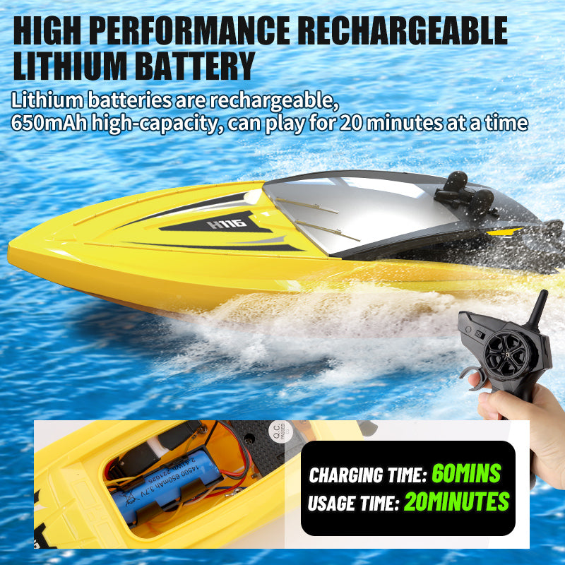 * 2.4G sistem: Koristi 2.4G bežični sistem za kontrolu, što omogućava stabilnu i pouzdanu vezu između daljinskog upravljača i čamca.