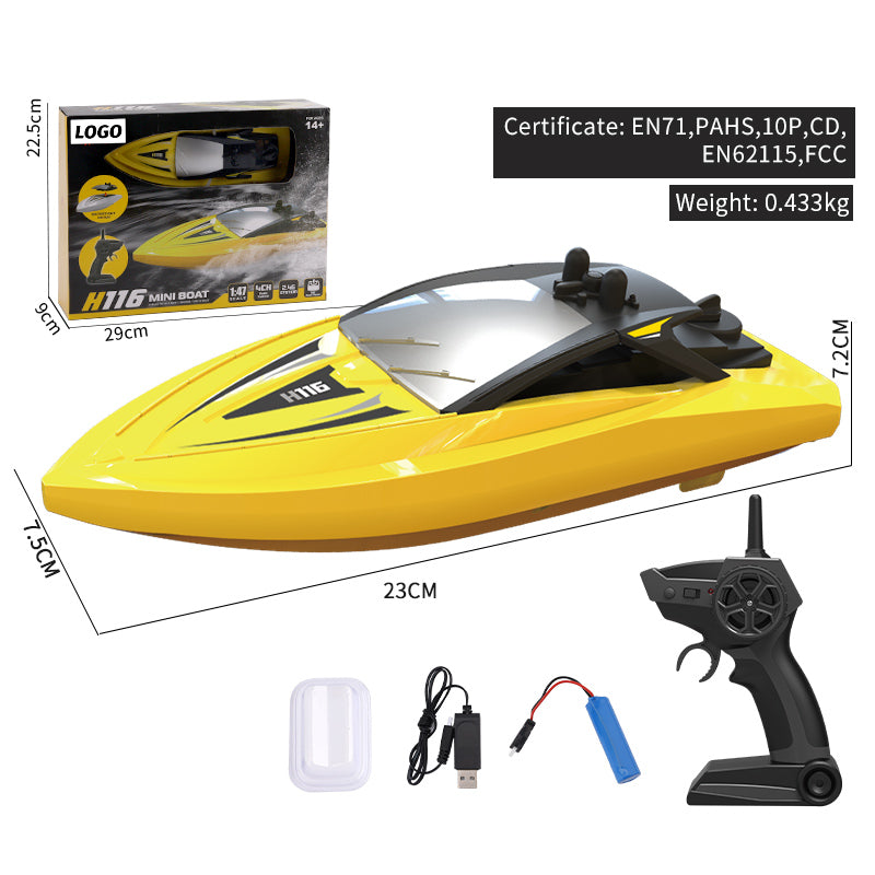 Ovaj proizvod je mini čamac na daljinsko upravljanje, model H116, proizveden od strane kompanije TKKJ. Namenjen je za zabavu i rekreaciju, a preporučuje se za osobe starije od 14 godina.