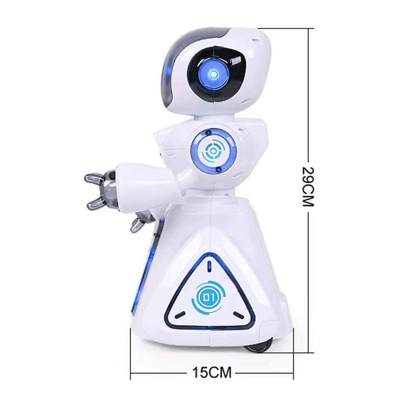 Ovaj inteligentni robot je savršen poklon za decu uzrasta 3 godine i više. Sa svojim futurističkim dizajnom i belom bojom, ovaj robot će sigurno privući pažnju vašeg mališana. Robot ima svetleće efekte na glavi i rukama, što ga čini još zanimljivijim za igru.