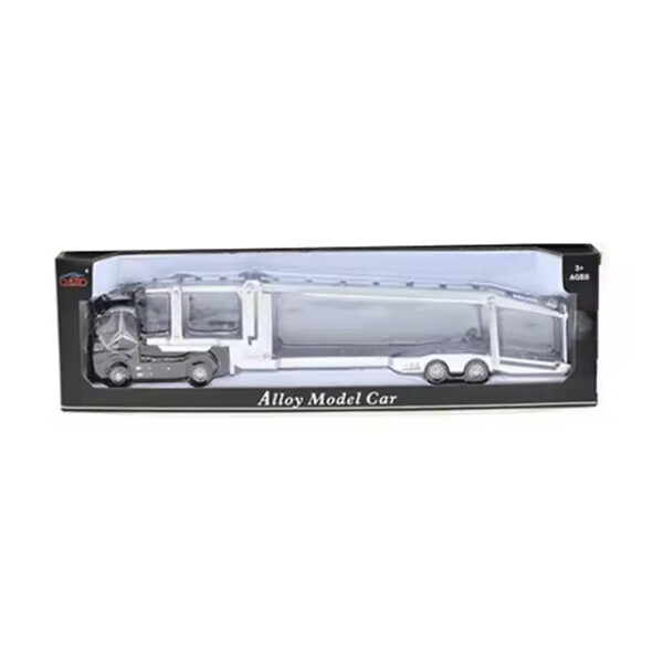 Prikolica ima više nivoa za utovar automobila, što dodatno doprinosi autentičnosti modela. Detalji poput točkova, svetlosnih grupa i spojnica su pažljivo oblikovani. Ovaj model je idealan za kolekcionare transportnih vozila ili kao igračka za decu koja su fascinirana kamionima i prevozom.