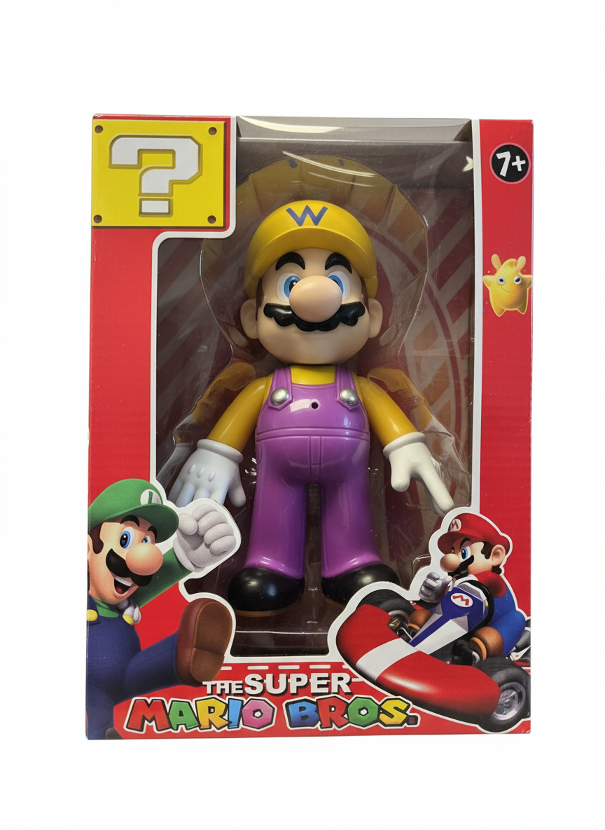 Wario figura je obavezna za sve prave Super Mario Bros kolekcionare! Ovaj lik je poznat po svom pohlepnom ali šarmantnom karakteru, i ova figura savršeno hvata njegovu suštinu. Idealna za dopunu vaše Mario kolekcije, za igru ili kao dekorativni element. Ljubičasto-zlatna kombinacija čini ovu figuru vizuelno atraktivnom i lako prepoznatljivom. Dodajte malo Wario ludila u vašu kolekciju!